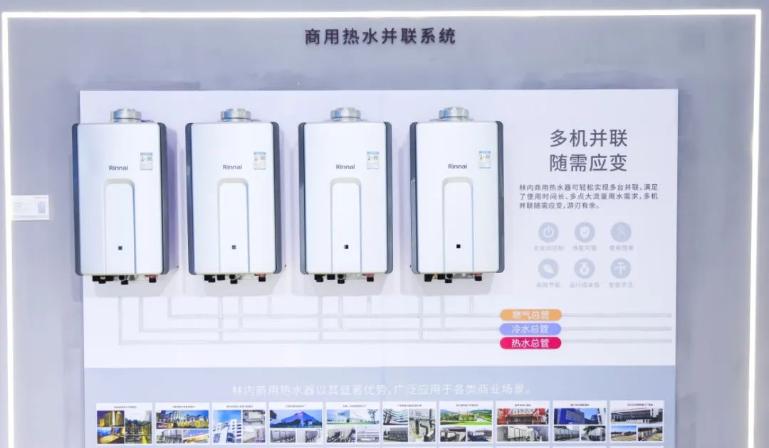林内商用热水并联系统具有性能可靠、使用简单、运行成本低、安全灵活、全自动控制等特点,可24小时提供稳定高效热水。可满足各种大、中、小型商用物业的热水需求,向客户提供系统性的商用热水解决方案。